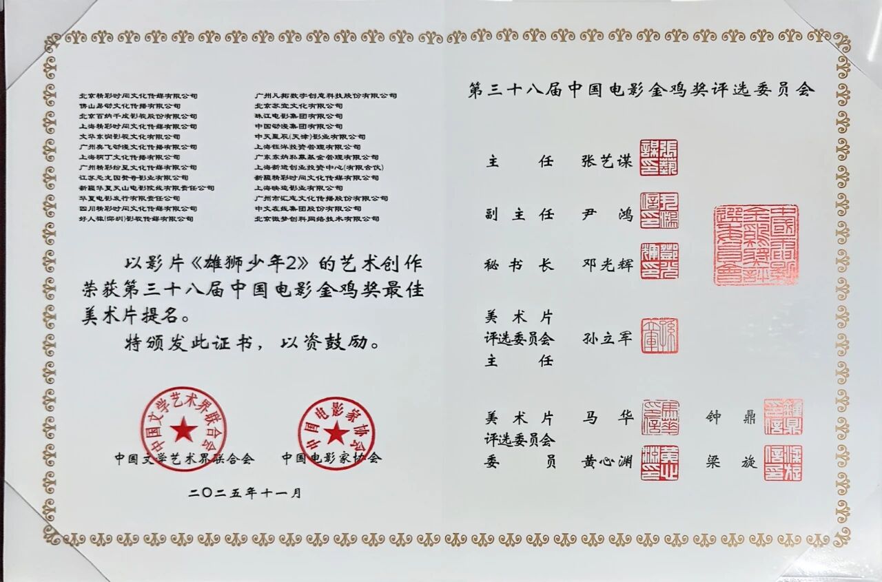 2025年11月14日,由百纳千成及旗下北京精彩出品的电影《雄狮少年2》剧组受邀出席第38届中国电影金鸡奖提名者表彰仪式,北京精彩制片人李依霖作为影片和主创代表到场。能够在这次中国电影年度盛事中获得提名,是对影片及主创团队的一份用心良苦的鼓励。